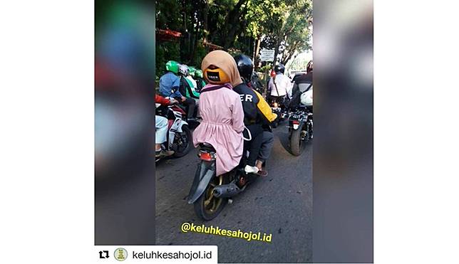 Helmnya dikasih kerudung biar menutup aurat