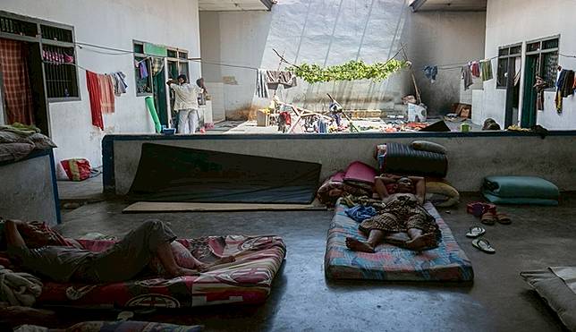 Mereka, para tahanan memilih tidur di mana saja asal keadaan bangunan masih bagus